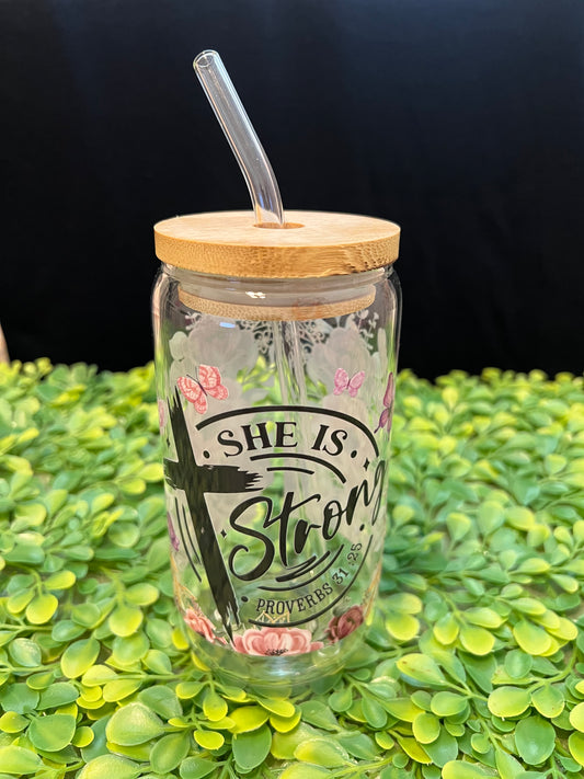 Glass Tumbler w/ Bamboo Lid & Glass Straw