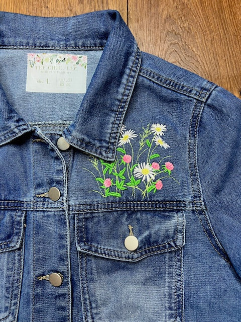 Add this beautiful floral wildflower embroidery pocket design to any denim jacket in your closet!