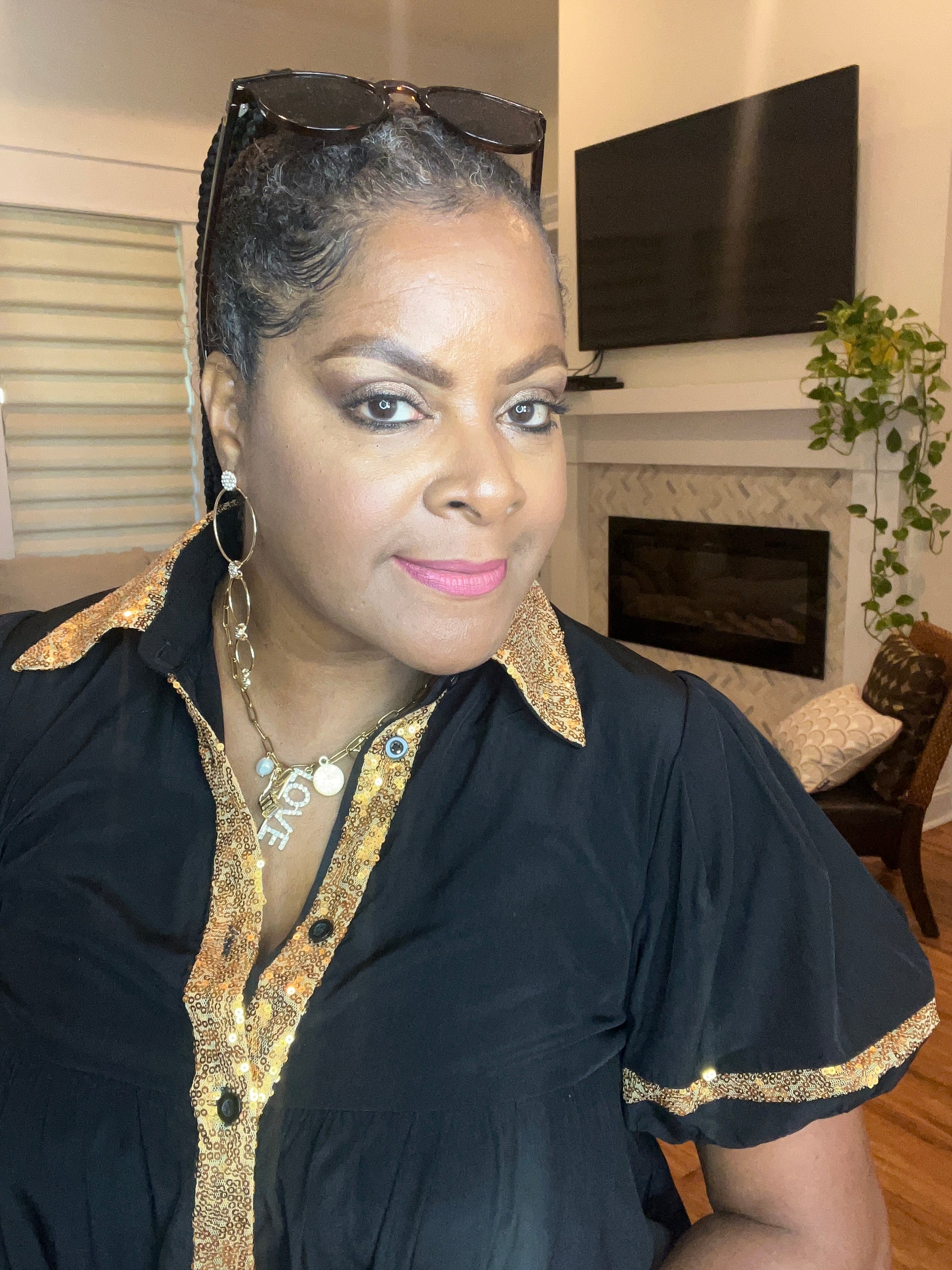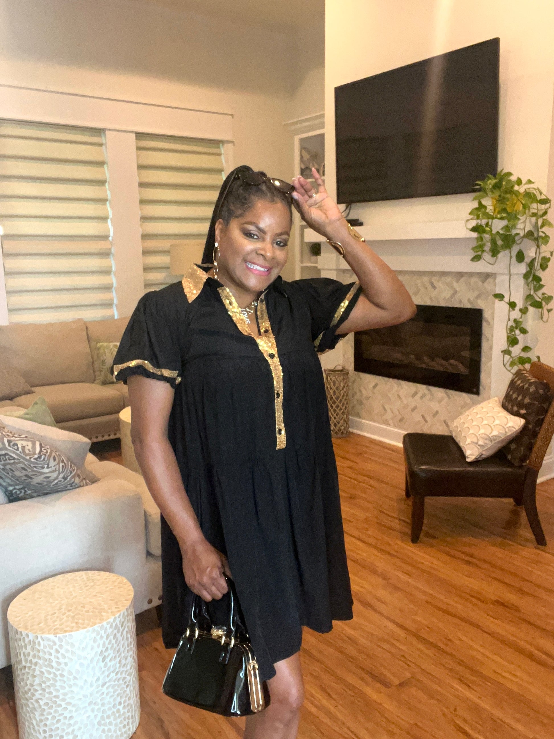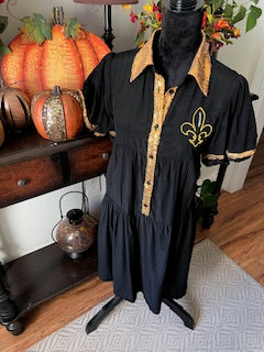 Black Sequin Trim Bubble Sleeve Game Day Shirt Dress