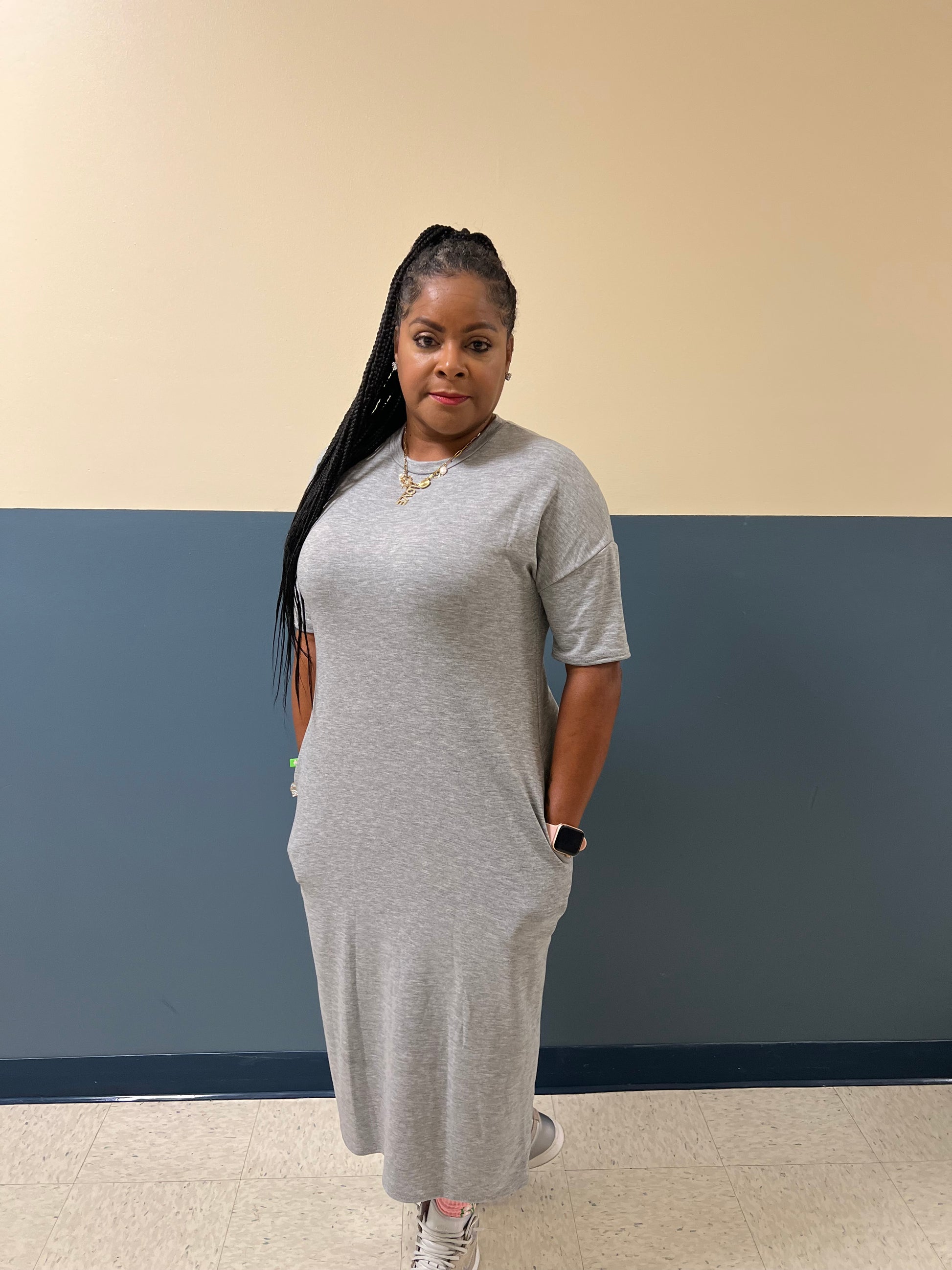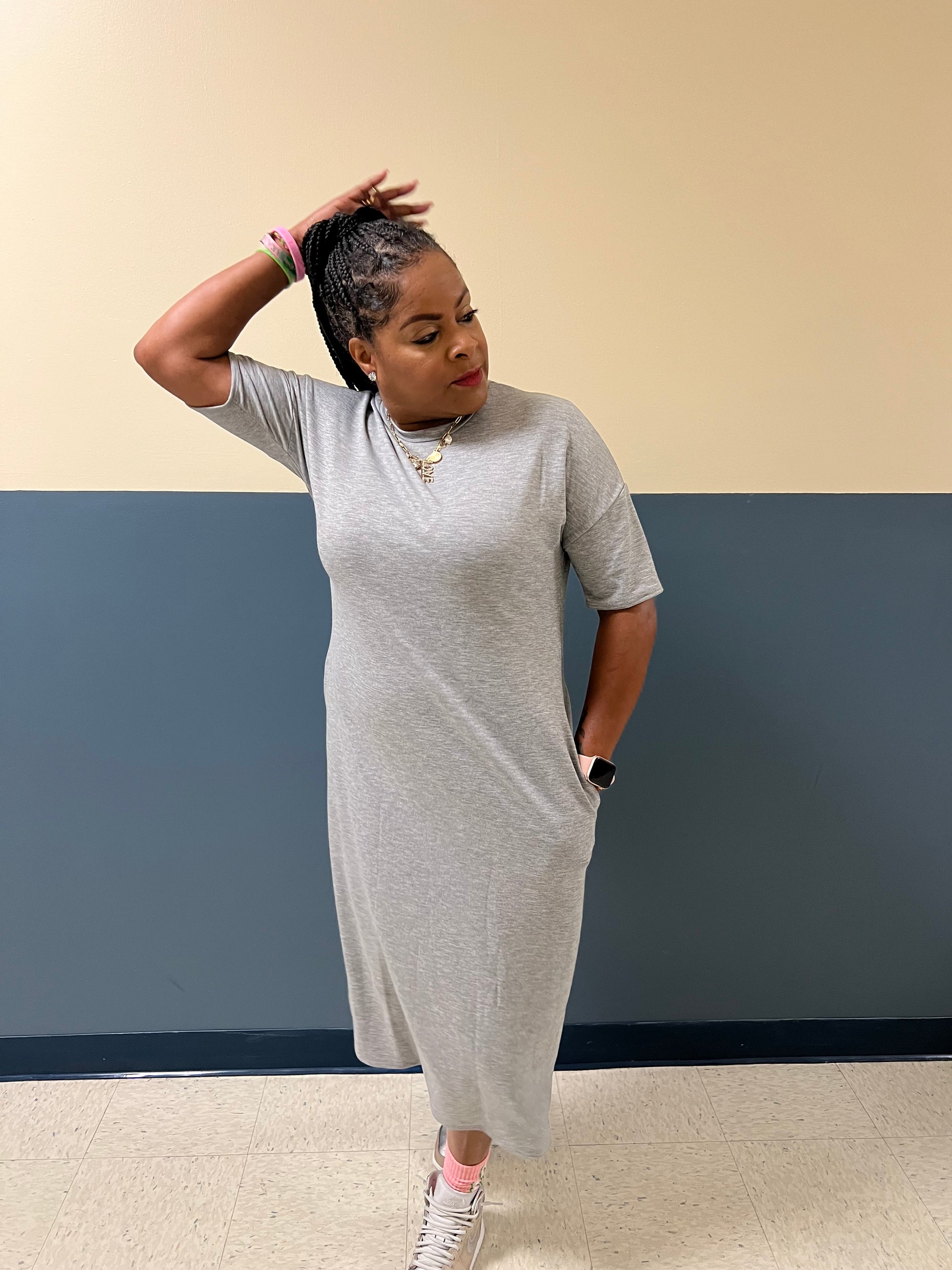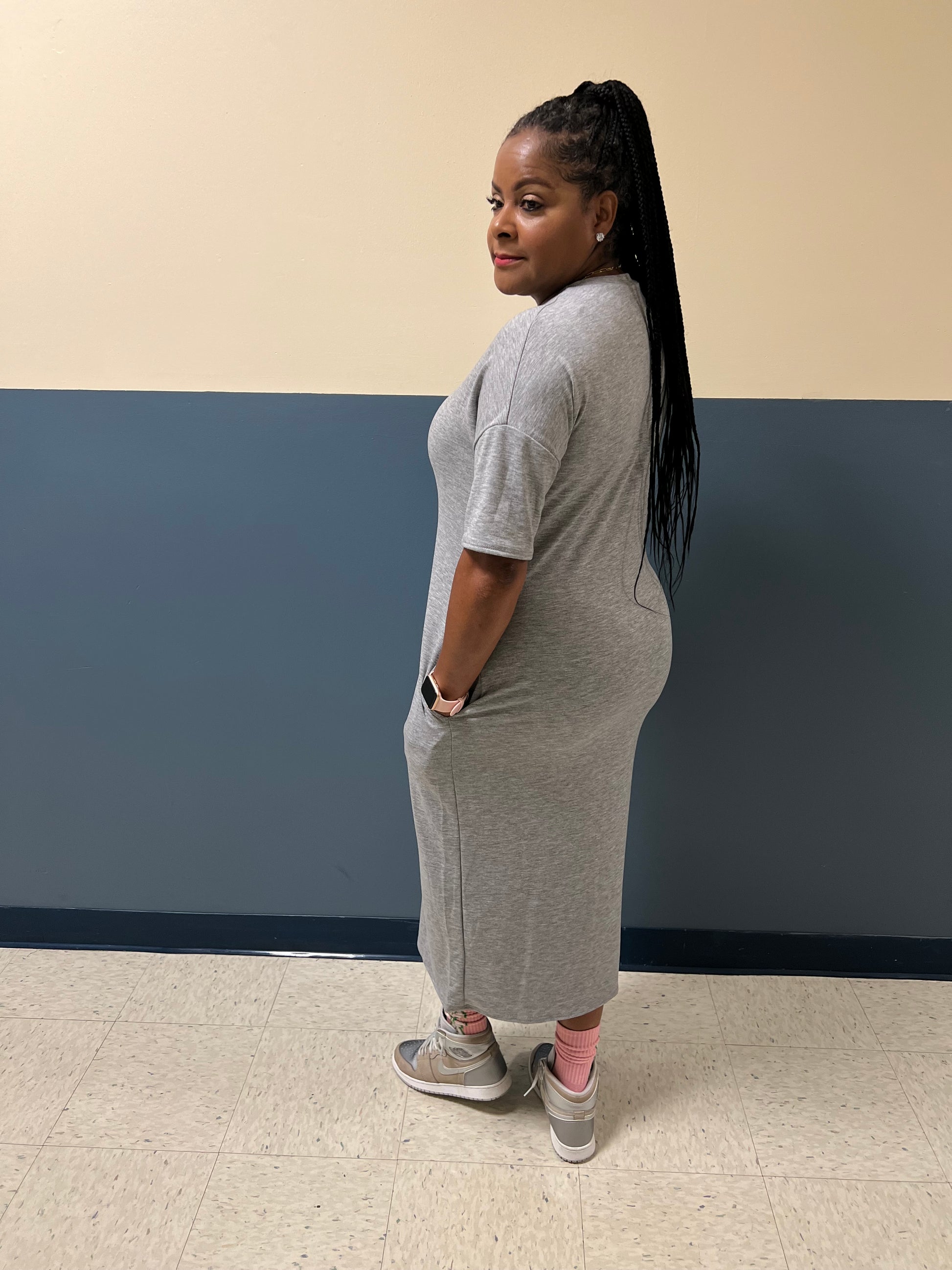 CLASSIC SWEATSHIRT DRESS RELAXED FIT SIDE POCKETS MIDI LENGTH
