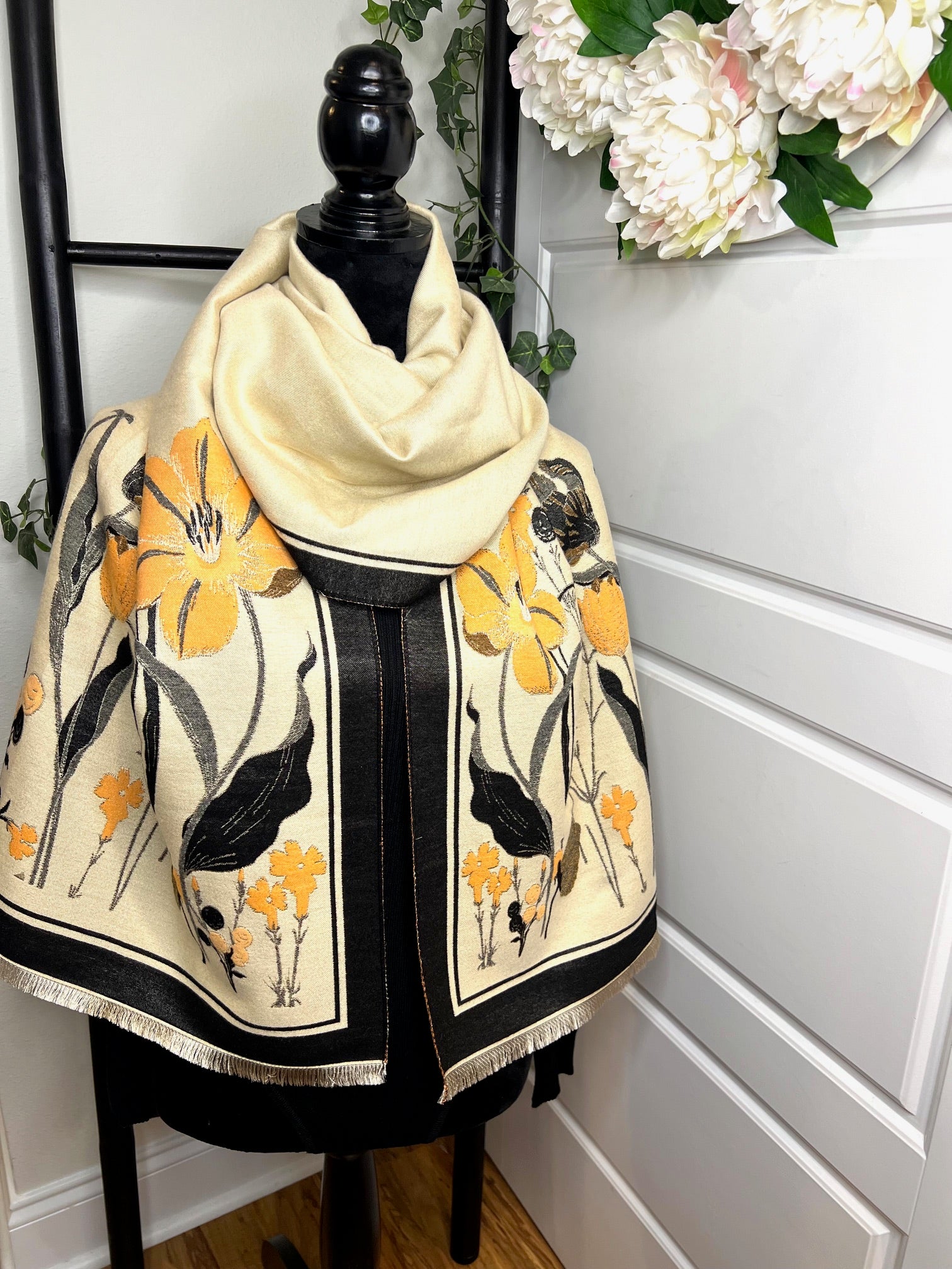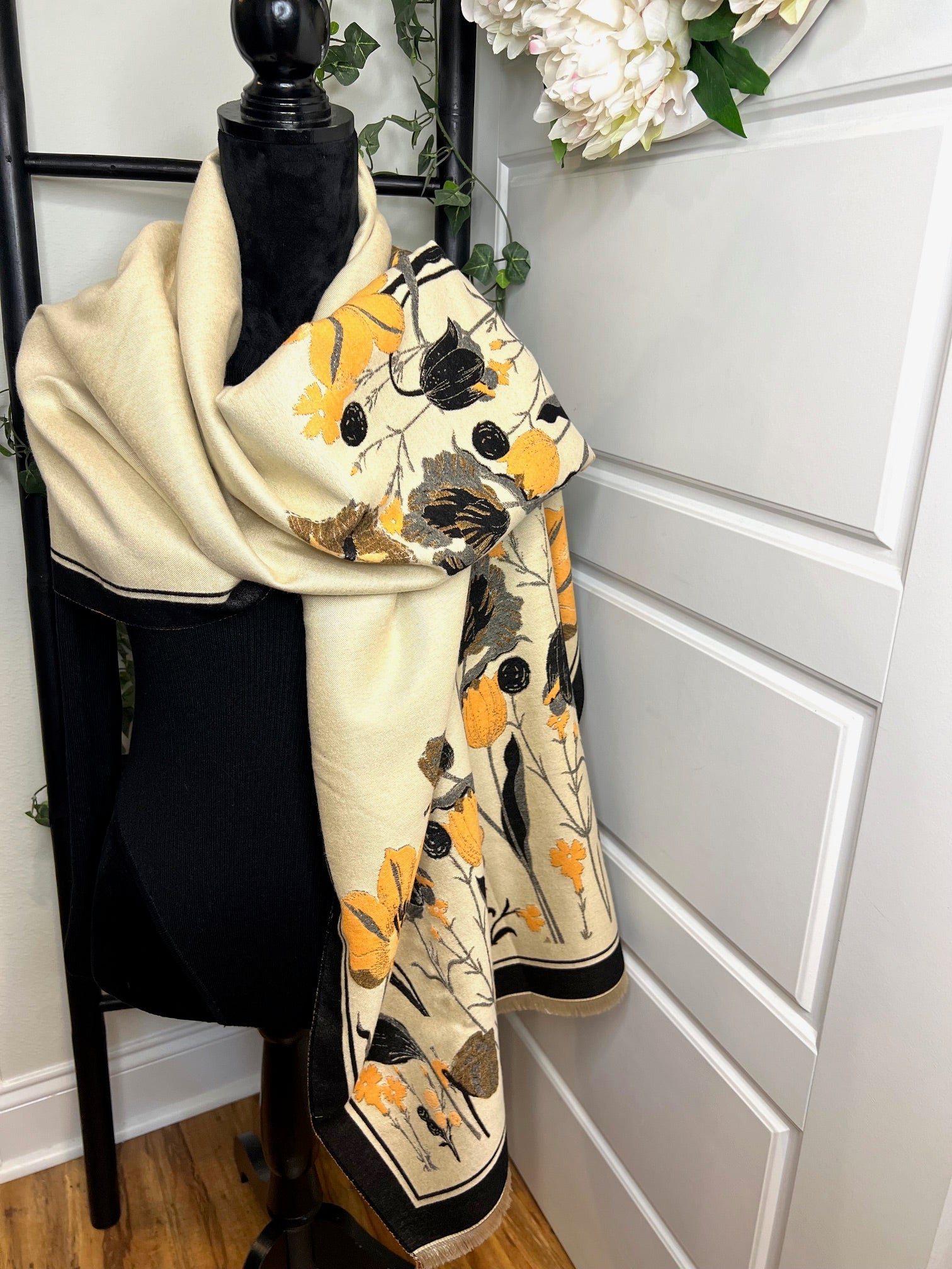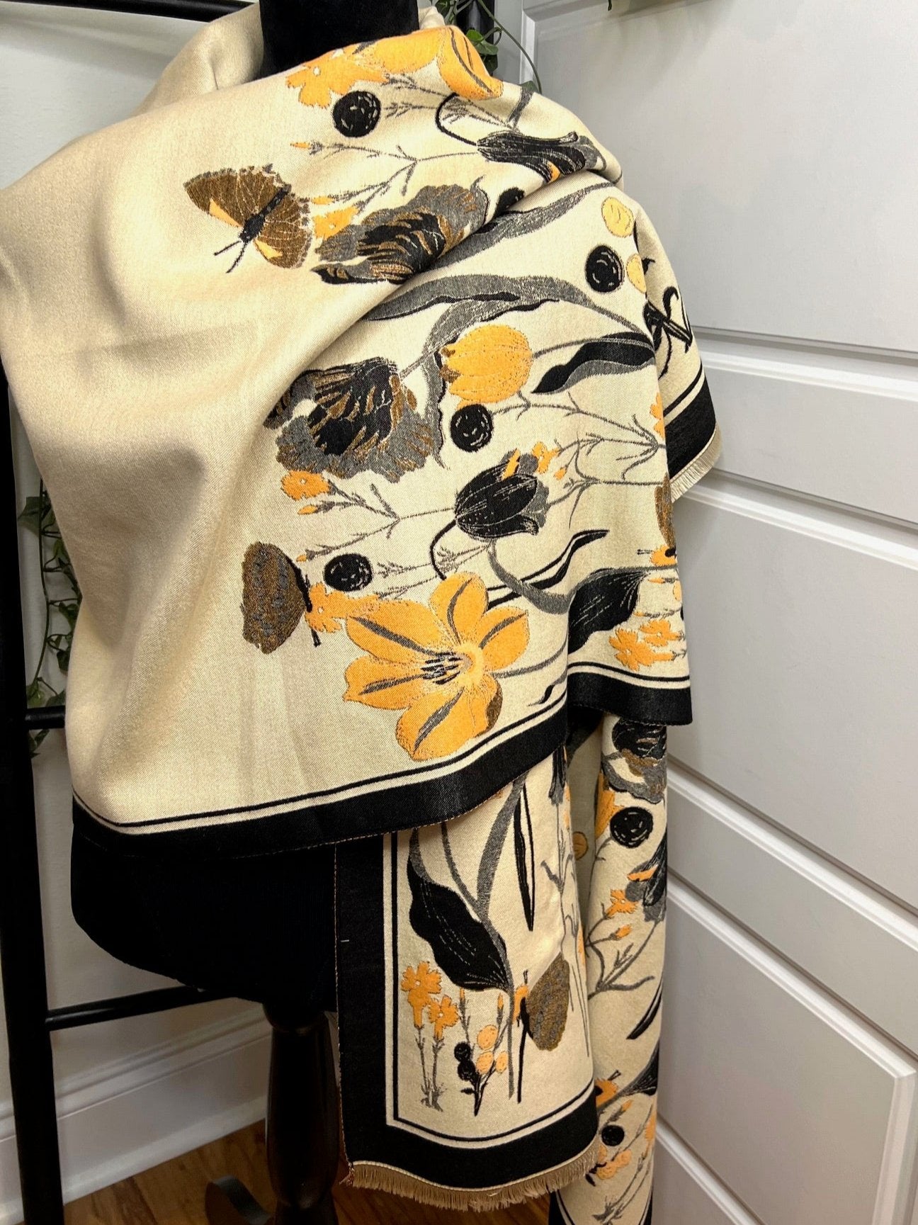 Vintage Cashmere Floral Printed Shawl & Scarf