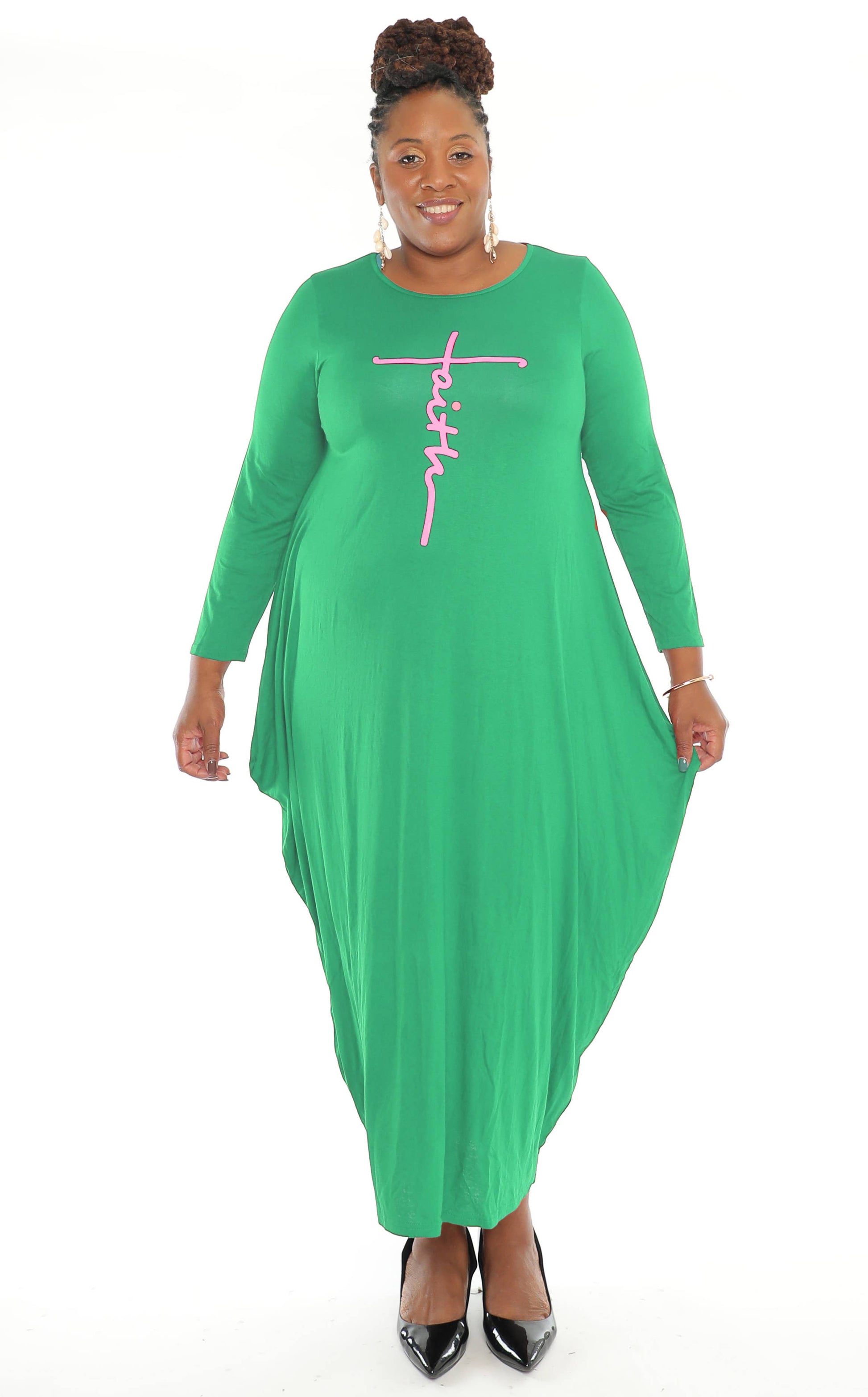 Women's Long Sleeves "Faith" Verbiage Maxi Dress- One Size